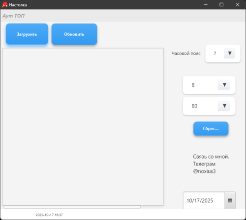 Не подумал я об этом. Должен с компа часовой пояс подтягивать. Если нужен другой, то добавлю в программу.