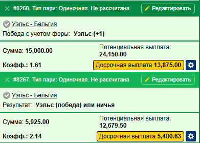 Постоянный hostmas 435 Опубликовано 13 октября Постоянный Поделиться Опубликовано 13 октября 11 часов назад, hostmas сказал: Уэльс неуступчивый и на контрах часто забивает. В голе хозяев валуй точно есть. И вряд ли Бельгия будет ему наштамповывать. 1:2 что то типо того может вполне быть валуй сыграл) Цитата Ссылка на комментарий https://brcbet.com/topic/429650-fonbet-promo-baltbet-toto-marafon-superpriz-ii/#findComment-514285 Поделиться на другие сайты Поделиться