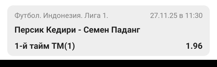 Постоянный good_bye 620 Опубликовано 27 ноября, 2025 Автор Постоянный Поделиться Опубликовано 27 ноября, 2025 (изменено) Прогноз алгоритма победа в обоих таймах 2:1 (1:0) Изменено 27 ноября, 2025 пользователем hostmas Цитата Ссылка на комментарий https://brcbet.com/topic/429686-analgin/page/9/#findComment-517402 Поделиться на другие сайты Поделиться