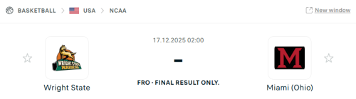 Модераторы Nazarnineangels 7 109 Опубликовано 17 декабря, 2025 Автор Модераторы Поделиться Опубликовано 17 декабря, 2025 Баскетбол на сегодня: USA NCAA New Hampshire Wildcats Stonehill 1:00 18.12.2025 138,5 1,91 USA NCAA Nicholls State Houston Christian 2:30 18.12.2025 138,5 1,91 USA NCAA Stephen F. Austin Texas A&M-CC 4:00 18.12.2025 139,0 1,91 USA NCAA UC Davis Seattle 4:00 18.12.2025 142,5 1,83 SOUTH KOREA KBL KCC Egis KoGas 12:00 18.12.2025 156,0 1,85 DENMARK Basketligaen Herlev Wolfpack Copenhagen 20:00 18.12.2025 172,5 1,83 ICELAND Premier League IR Reykjavik Valur 21:15 18.12.202 5 172,3 1,9 ICELAND Premier League Tindastoll KR Basket 21:15 18.12.2025 183,5 1,8 USA NCAA Women Ole Miss W Miss. Valley St. W 0:00 18.12.2025 133,5 1,91 USA NCAA New Hampshire Wildcats Stonehill 1:00 18.12.2025 138,5 1,91 USA NCAA Pittsburgh Binghamton 2:00 18.12.2025 136,0 1,91 USA NCAA St. Louis Billikens Bethune-Cookman 3:00 18.12.2025 157,5 1,83 USA NCAA Colorado Portland State 4:00 18.12.2025 150,5 1,91 GREECE Elite League Lavrio Sofadon 17:00 18.12.2025 154,3 1,9 EUROPE Euroleague Women - Second stage Landes W Valencia W 20:30 18.12.202 5 137,5 1,85 EUROPE Euroleague Women - Second stage Zaragoza W Fenerbahce W 21:00 18.12.2025 149,5 1,85 1 Цитата Ссылка на комментарий https://brcbet.com/topic/429694-5by5-otbor-ot-neyroseti-na-totaly-v-basketbole/page/3/#findComment-518397 Поделиться на другие сайты Поделиться