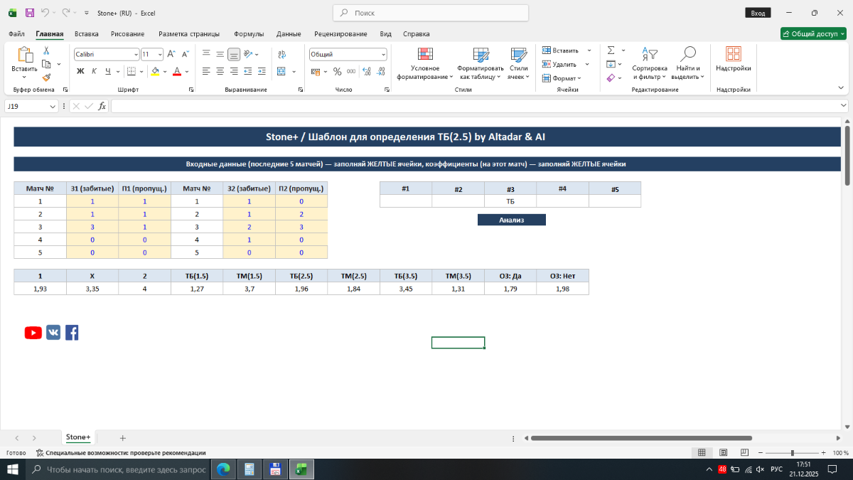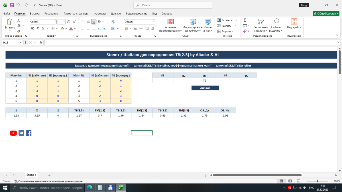 Модераторы Nazarnineangels 7 048 Опубликовано 21 декабря, 2025 Автор Модераторы Поделиться Опубликовано 21 декабря, 2025 16 минут назад, Роман .Пшерадзский сказал: И насколько принципиально заполнять все коэфф. в версии Stone+? Это влияет на алгоритмы во вторых 3-х колонках? А то на каждый матч кучу времени убьётся... Нужно все заполнять, можна и без кф сделать, но там кф малые Цитата Ссылка на комментарий https://brcbet.com/topic/429700-stone-shablon-dlya-opredeleniya-tb25/page/3/#findComment-518554 Поделиться на другие сайты Поделиться