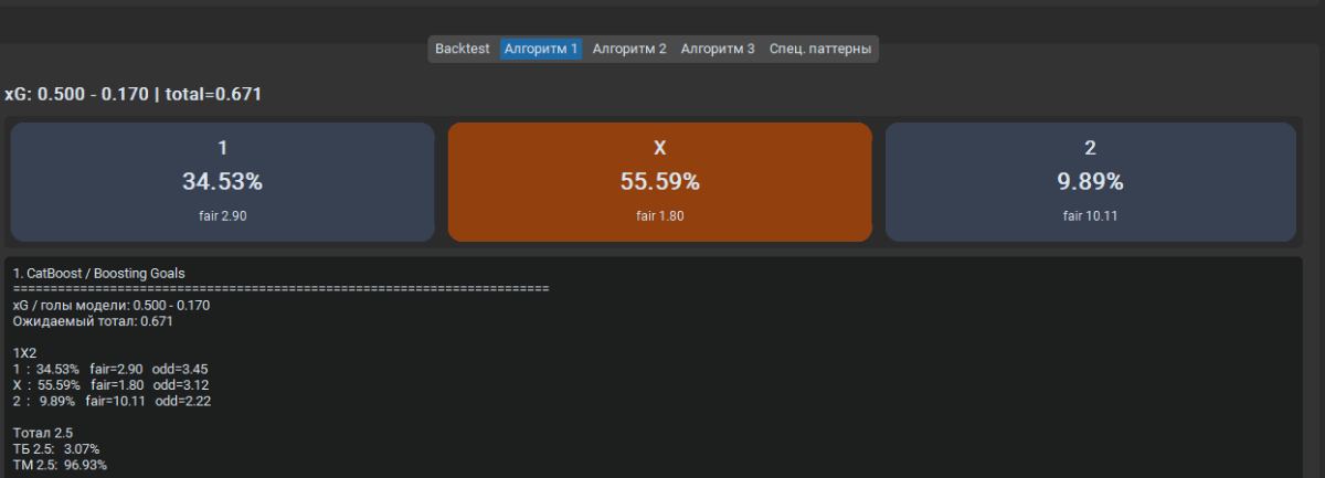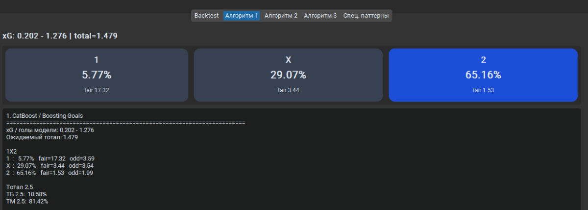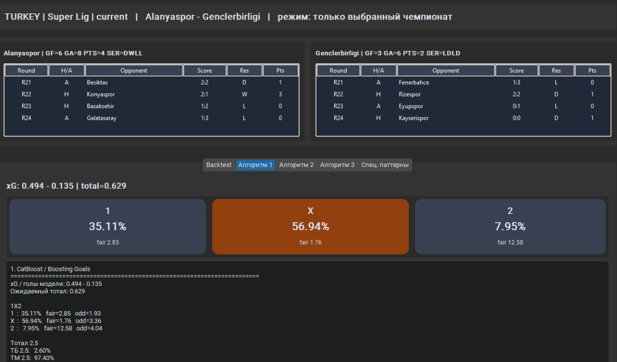 mihailopolya 95 Опубликовано 10 марта Поделиться Опубликовано 10 марта 57 минут назад, Валерий Иванович сказал: У меня Стекинг из трех базовых моделей: XGBoost, LightGBM, CatBoost. Последовательное обучение на ошибках друг у друга, далее создается итоговый стекинг, выполняет обобщение каждого видения моделей (они все разные признаки используют), что дает прирост в точности если брать отдельные результат от каждой модели. Уже добавлял рандомфорест, но думаю вернуть его обратно, для разнообразия. В базе *.db сейчас 11.5к записей о матчах с 128 признаками, начинал с csv. Сейчас добавил 5 новых признаков в базу: Запустил шайтан машину, для парсинга и заполнения этих признаков ))) Надеюсь в flashscore не упадет сегодня ))))) Я честно сказать много чего пробовал с момента первого запуска в августе 25 года, фолды, автоподбор параметров, разные модели, стекинги, вотинги, бустинги, даже нейронку Keras засовывал, но он себя показывает хорошо от 100к записей хорошо, до чего мне далеко. Пару раз обнулял базу, пока не допер что можно парсеры делать на регулярках для добавления данных. Сейчас пока нравятся эти три модели, и стекинг оставил - нормальная тема время показало ))) Отказался от балансировки, инжиниринга и маштабируемости что бы предиктор видел фактические данные, переобучения больше 1% не повышается, иногда в минус вообще уходит - обобщающая способность прекрасна )) Все работает на полном автомате, заполнение базы, удаление токсичных данных из базы, обучение ) Почти год работы, с каждым днем что-нибудь новое в башку зайдет, вот и пилю и пилю постоянно )) LGBM пробовали? Или вы только через классификацию? Цитата Ссылка на комментарий https://brcbet.com/topic/429738-moe-nachinanie-v-mashinnyh-metodah/page/9/#findComment-522077 Поделиться на другие сайты Поделиться
