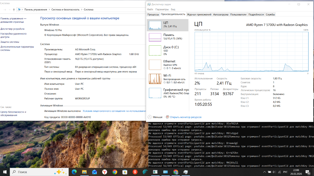 Подскажите пожалуйста, в чем может быть проблема: на обработку 150 игр уходит 2 часа. И с впн и без. На рабочем ноуте скорость интернета всего 20-25 мбит, но грузит за 10-15 минут