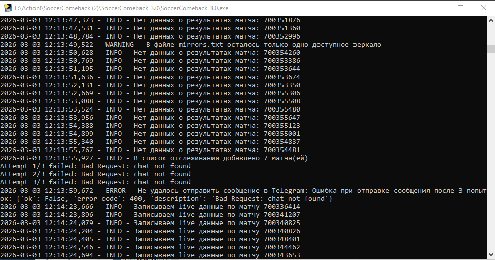 SeregaM 7 Опубликовано 2 марта Поделиться Опубликовано 2 марта В 25.02.2026 в 19:51, andrew gromotcov сказал: Спасибо за ссылки! Где брать потом? завтра походу они не рабочие будут! на удивление одна ссылка долго живет уже.. вообще в ТГ набираете в поиске BK info. это бот с зеркалами. нажимаете в меню внизу 1хbet и он пришлет зеркало актуальное.. переходите по этой ссылке - открывается страница бк 1хbet. вот вам и ссылка рабочая. Вообще хочу сказать следующее на счёт этого сканера: вещь стоящая. За выходные прилетало много сигналов мне. да, чистый комбэк случается не так часто.. чаще срабатывает 1х-х2.. но.. подметил некоторые моменты - голы забиваются почти во всех этих сигналах.. часто забивает гол тот кто должен комбек совершить но в итоге он не побеждает.. так что работать по этому сканеру, по его сигналам можно и нужно. кто хочет, можно в настройках кое что менять под себя.. в том файле где прописаны условия сигналов.. ну там количество атак опасных, ударов в створ и тп и тд.. минуты сигнала можно изменить.. коэф фаворита и аутсайдера.. Но опять же, при сигнале надо смотреть кто играет. заметил еще что чаще случается комбек при поступивших кф на победу до 3. если больше 3 кф то может случиться ничья.. ну или просто фаворит гол забьет но проиграет.. в будни матчей совсем мало подходящих.. поэтому сигналов маловато..почти нет.. в выходные прилетает норм.. даже хочется настройки изменить построже)) В целом еще нужно поюзать дистанцию.. и не просто сигналы проверять а именно сидеть и работать.. прилетел сигнал - зашел на этот матч и проследил.. какие были по ходу игры кф и тп и тд.. можно попутно ловить голы. 5 Цитата Ссылка на комментарий https://brcbet.com/topic/429746-programma-ot-podpischika-kombek-favorita/page/6/#findComment-521582 Поделиться на другие сайты Поделиться