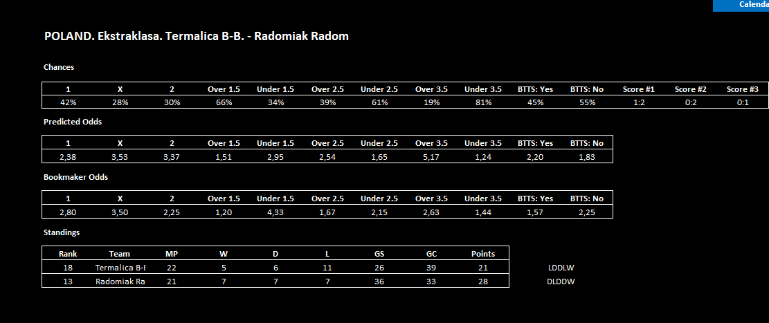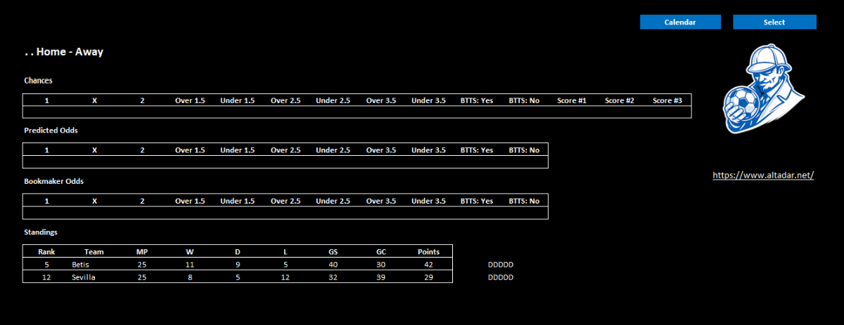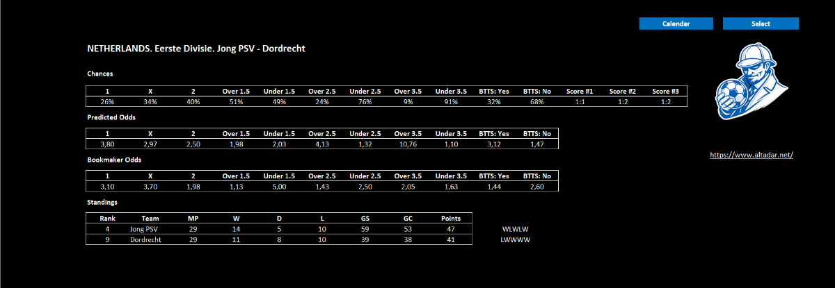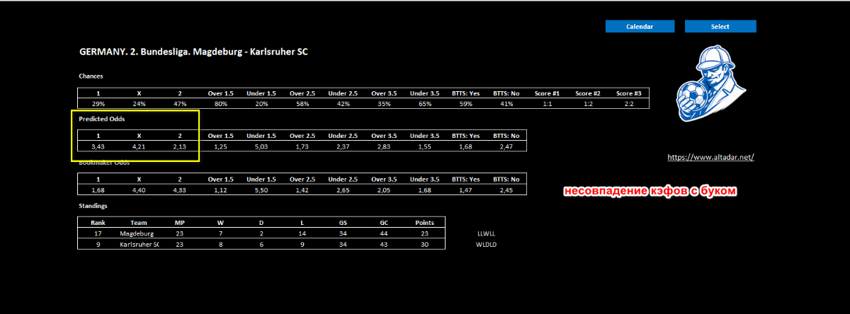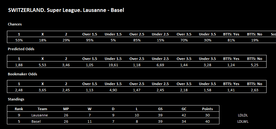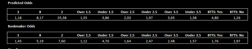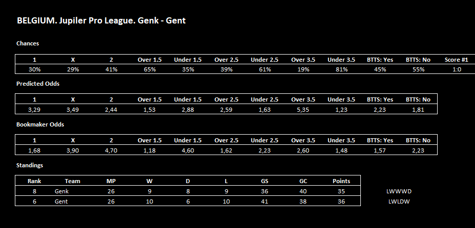 Модераторы Nazarnineangels 7 112 Опубликовано 28 февраля Модераторы Поделиться Опубликовано 28 февраля Moriarty — программа анализирует футбольные матчи по статистике и формирует процентные шансы для 1X2, тоталов (Б/М 1.5–3.5), ОЗ: Да/Нет, собственные коэффициенты на матч и приблизительные возможные счета. Работает на основе формы команд, результативности, пропущенных/забитых и других ключевых метрик. Старая разработка, только подкорректированная силами нейросети. Она давала очень точные прогнозы, но только тогда, когда сходилось много факторов — например, когда была заметная разница (преимущество) между нашими прогнозными коэффициентами и коэффициентами БК, высокие шансы на один из прогнозов, а также когда все 3 предполагаемых счета тоже подтверждали наш прогноз. Конечно если не ставить на все подряд и подходить с умом, то можна на что-то рассчитывать. Так-же можете экспериментировать и искать свои отборы. Смотрим инструкцию: Moriarty.zip 21 Цитата Ссылка на комментарий https://brcbet.com/topic/429750-moriarty/ Поделиться на другие сайты Поделиться