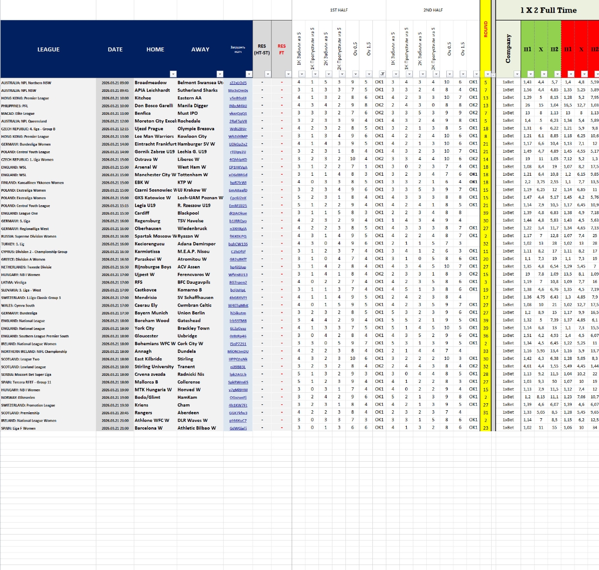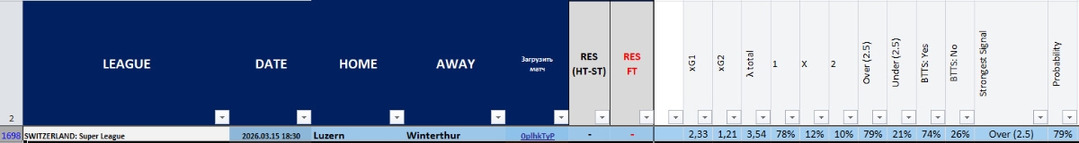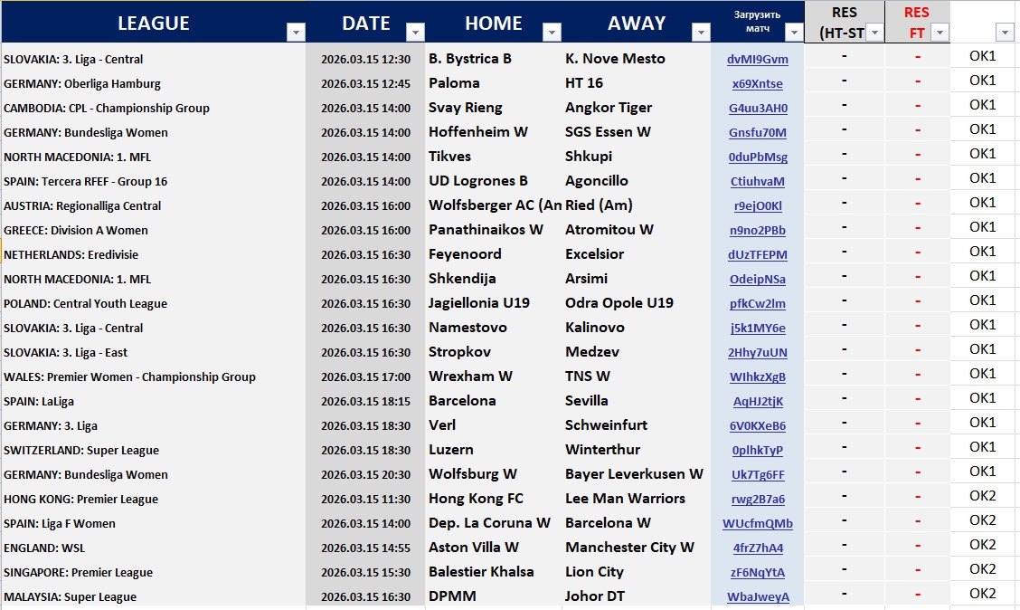 Постоянный The Iron Wizard 1 596 Опубликовано 15 марта Постоянный Поделиться Опубликовано 15 марта Посмотрим что получится. H2H не учитываются. Матчи на сегодня, а также результат за 14.03.2026. Гол фаворита.xlsx 5 Цитата Ссылка на комментарий https://brcbet.com/topic/429759-test-algoritma-s-telegi-na-gol-favorita-do-30-minuty/ Поделиться на другие сайты Поделиться
