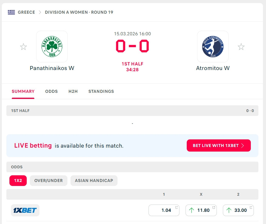 Постоянный The Iron Wizard 1 596 Опубликовано 15 марта Автор Постоянный Поделиться Опубликовано 15 марта (изменено) 27 минут назад, The Iron Wizard сказал: Жаль что бабы https://www.flashfootball.com/match/nees-atromitou-vDWL7hLs/panathinaikos-U133kB5D/?mid=n9no2PBb#/odds-comparison/1x2-odds/full-time Плюс. Посмотрим этот https://www.flashfootball.com/match/kalinovo-Eur4pokC/namestovo-dAWMom5g/?mid=j5k1MY6e#/odds-comparison/1x2-odds/full-time. Только конечный результат. Можно понаблюдать https://live5.nowgoal26.com/match/live-2958310 Изменено 15 марта пользователем The Iron Wizard Цитата Ссылка на комментарий https://brcbet.com/topic/429759-test-algoritma-s-telegi-na-gol-favorita-do-30-minuty/#findComment-522555 Поделиться на другие сайты Поделиться