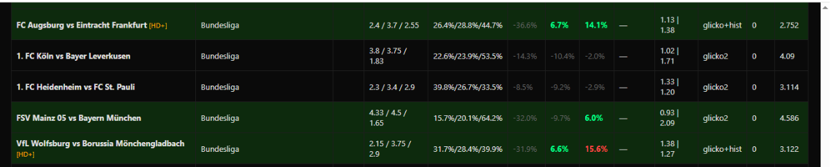 Постоянный good_bye 641 Опубликовано 2 часа назад Автор Постоянный Поделиться Опубликовано 2 часа назад 3 минуты назад, kelbr сказал: вот что то пришла мысль а что если создать симулятор на реальных данных и дать агентам все это прогнать за вознаграждения и так далее,я просто видел что то подобное делали но не на спорте.тут же есть точность и ошибки добавить результы и так далее нужно будет как ни будь попробовать . Bologna: Среднее количество забитых голов за матч: 0.99 AS Roma: Среднее количество забитых голов за матч: 1.19 Bologna: Среднее количество пропущенных голов за матч: 1.13 AS Roma: Среднее количество пропущенных голов за матч: 1.21 Bologna: Среднее количество забитых голов за матч по прогнозам букмекера: 1.41 AS Roma: Среднее количество забитых голов за матч по прогнозам букмекера: 1.25 Bologna: Среднее количество пропущенных голов за матч по прогнозам букмекера: 1.00 AS Roma: Среднее количество пропущенных голов за матч по прогнозам букмекера: 1.06 Bologna: Среднее отклонение (MAE) в прогнозировании букмекером забитых голов: 0.42 AS Roma: Среднее отклонение (MAE) в прогнозировании букмекером забитых голов: 0.06 Bologna: Среднее отклонение (MAE) в прогнозировании букмекером пропущенных голов: 0.14 AS Roma: Среднее отклонение (MAE) в прогнозировании букмекером пропущенных голов: 0.15 игрушка-1.html 16.09 kB · 1 загрузка а замысел в чем? веса искать? Цитата Ссылка на комментарий https://brcbet.com/topic/429766-moya-proga-mozhet-komu-prigoditsya/page/17/#findComment-525012 Поделиться на другие сайты Поделиться