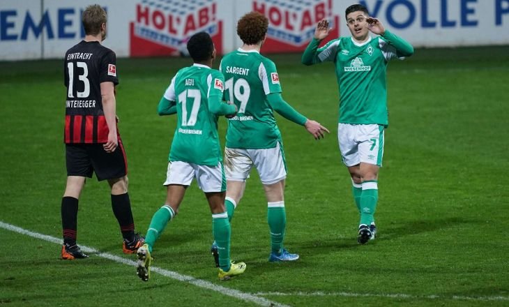 В стартовом матче 23-го тура немецкой Бундеслиги "Вердер" одержал победу над "Айнтрахтом".
