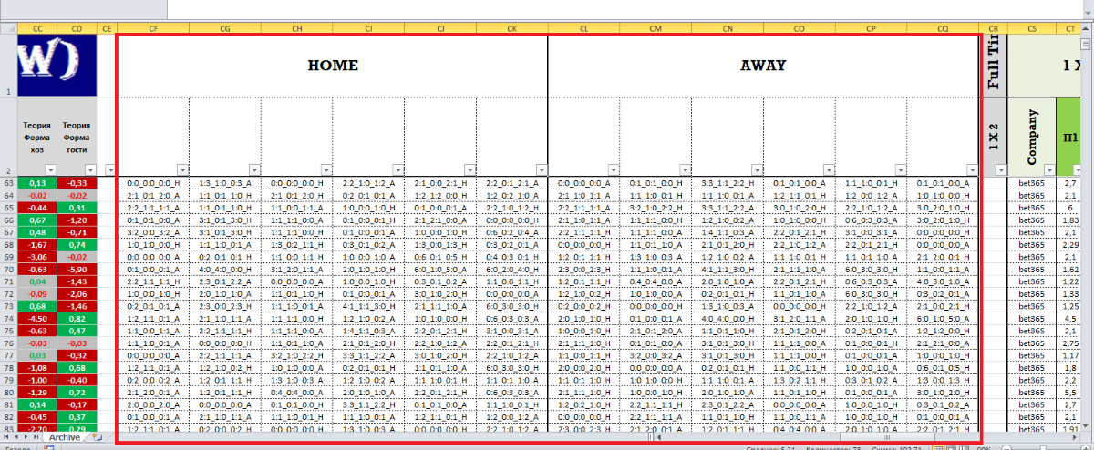 VBAbots 100 Опубликовано 13 июня Поделиться Опубликовано 13 июня (изменено) 31 минуту назад, Nazarnineangels сказал: У кого есть архив с такими кэфами (см. ниже) и 5 последними играми (счетом) команд к1 дома з/п и к2 в гостях з/п. Но результаты без товарищеских, кубков и т.д., только результаты чемпионата интересуют. 1X2, 1X, X2, 12, ТМ(2.5), ТБ(2.5), ТМ(1.5), ТБ(1.5), ТМ(3.5), ТБ(3.5), Ф1(0), Ф2(0), ОЗ: Да, ОЗ: Нет, 1-й тайм счет, 2-й тайм счет, Полная игра счет, Страна, Лига, Первая команда, Вторая команда. Помимо прогрузов еще проверяю интересную тему на ОЗ: Нет, пока проход в районе 78% со ср. кф 1.75. Начал только недавно собирать архив, а игр сейчас мало в чемпионатах. У меня есть такой в плане не такой как ты написал но тоже может пригодится)). Сам делал в прошлом году чтоб скормить нейронку)) Все равно ничего не вышло. Вот можно сказать дарю. АРХИВДЛЯBRCBET.xlsx Изменено 13 июня пользователем VBAbots 2 Цитата Ссылка на комментарий https://brcbet.com/topic/68703-remont-tablits/page/165/#findComment-507867 Поделиться на другие сайты Поделиться