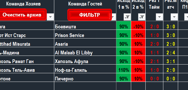 kovan 1 557 Опубликовано 10 ноября Поделиться Опубликовано 10 ноября 7 минут назад, daszzai сказал: Может я что-то не так понял, но ведь первый фильтр ориантирован на домашнюю команду и считает забитые голы команды, а второй фильтр сколько команда пропускает? Тогда просто сделав процент на втором фильтре выше, а на первом ниже (или как вы сказали по цветам) то это не верный отбор будет, как если бы мы оставили больший процент на первом фильтре, а меньший на втором. Надеюсь понятно написал... Процент это сколько шансов забить у 1команды(F) и сколько шансов у 2команды (G), помоему, всё ясно. Тут нет "сколько пропустит". Вот смотри по отбору и рядом результат матчей,(две ставки не зашли): Цитата Ссылка на комментарий https://brcbet.com/topic/68703-remont-tablits/page/175/#findComment-515864 Поделиться на другие сайты Поделиться