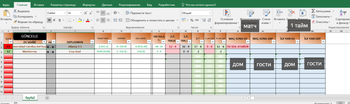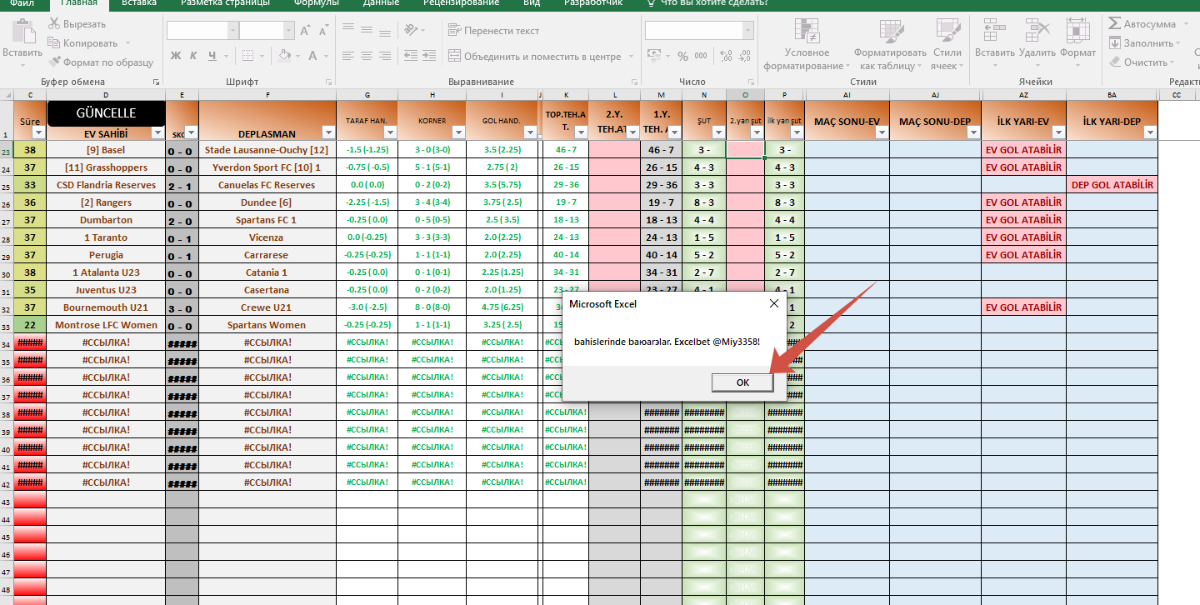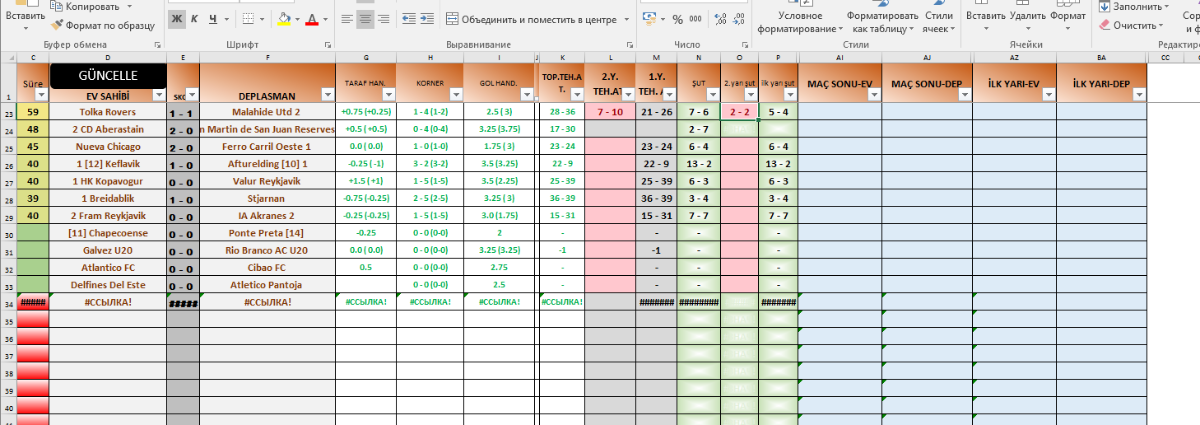 Hacker 114 Опубликовано 21 мая, 2024 Поделиться Опубликовано 21 мая, 2024 В 17.05.2024 в 06:36, Gab сказал: Доброе утро всем , попалась таблица прогнозирует гол хозяев или гостей в лайве , в 1 тайме и матче . Тестировал немного брал итб или кто забьет 1 гол . EXCELBET CANLI ANALİZ-2023-1.xlsm 15.81 MB · 48 загрузок Требует пароль Цитата Ссылка на комментарий https://brcbet.com/topic/68703-remont-tablits/page/52/#findComment-478681 Поделиться на другие сайты Поделиться