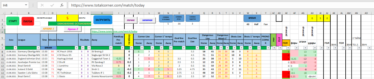 Модераторы fenix 454 Опубликовано 21 мая, 2024 Модераторы Поделиться Опубликовано 21 мая, 2024 В 17.05.2024 в 02:42, Кирилл Клейменов сказал: Работал в своё время - отличный парсер "1_LIVE_mod"... Статистику брал - с сайта - "Тоталкорнер". Таблица интересна своими настройками, возможностью вставлять свои и изменять существующие фильтры... При этом - настраивать звук при сигнале и много других фишек... Испытывал на ней - кучу разных стратегий и наблюдений... Недавно откопал у себя в архиве - попробовал запустить - не работает... Возможно изменился адрес или условия загрузки (3 гола прошло) - хотя сам сайт работает (ссылка есть в самой таблице)... Уверен - что починивший эту табличку - обретёт славу и почитание на этом форуме...)) 1_LIVE_mod.xlsm 2.22 MB · 23 загрузки Вот как человек может в красивой форме изложить просьбу...))) 3 Цитата Ссылка на комментарий https://brcbet.com/topic/68703-remont-tablits/page/52/#findComment-478695 Поделиться на другие сайты Поделиться
