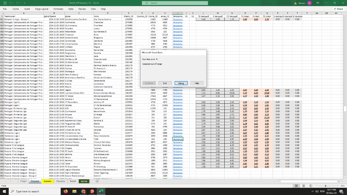 Теперь он загружает мои матчи, но не дает мне никаких прогнозов, только ошибку, когда я попадаю в событие... Вы могли бы мне помочь?