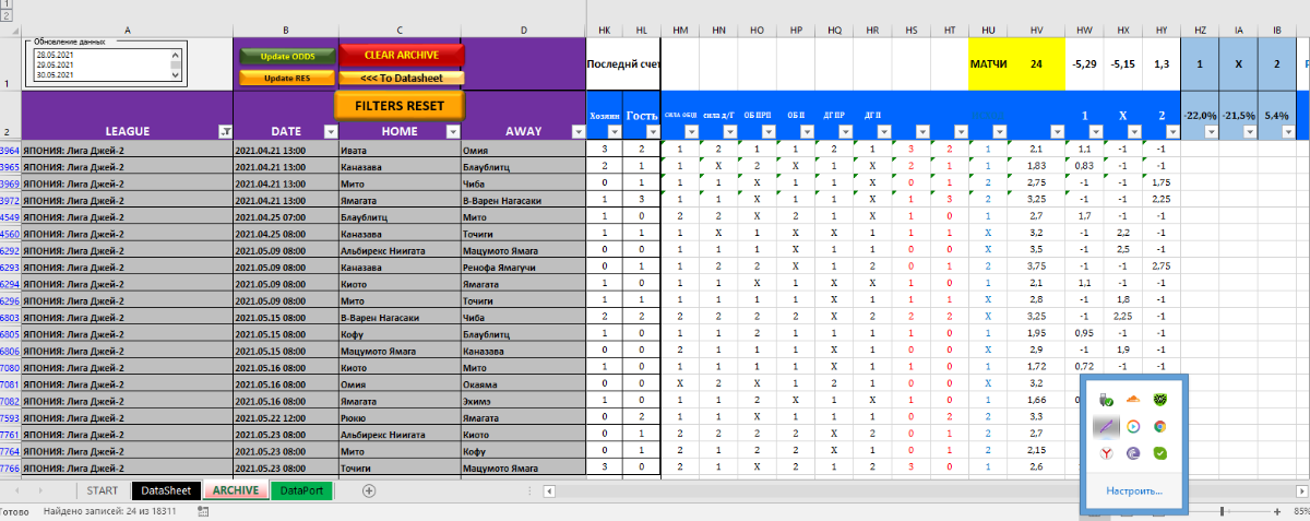 victorin 191 Опубликовано 30 мая, 2021 Поделиться Опубликовано 30 мая, 2021 (изменено) 4 минуты назад, Farel сказал: Когда сборка нормальная, то рои плавает +-10%, не более. И матчи тут не причем. Может только лига быть причем, договорная, мего договорная, супер мего договорная, малое кол-во договорников и т д. То что договорные матчи есть не стану спорить, но ведь в базе же тоже есть такие матчи? или нет? так что этим можно пренебречь я думаю, твоя сборка же показала рой на любых матчах прошедших включая и "договорняки" или их там не было, а теперь они появились? Изменено 30 мая, 2021 пользователем victorin 2 Цитата Ссылка на комментарий https://brcbet.com/topic/87-algoritm-farella/page/90/#findComment-49096 Поделиться на другие сайты Поделиться
