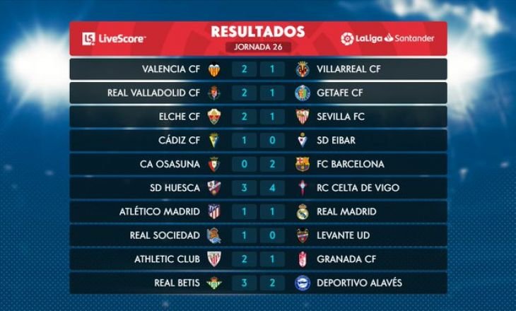 "Барселона" продолжила серию без поражений, "Бетис" совершил впечатляющий камбэк, а в "мадридском дерби" - ничья: все результаты 26-го тура Ла Лиги